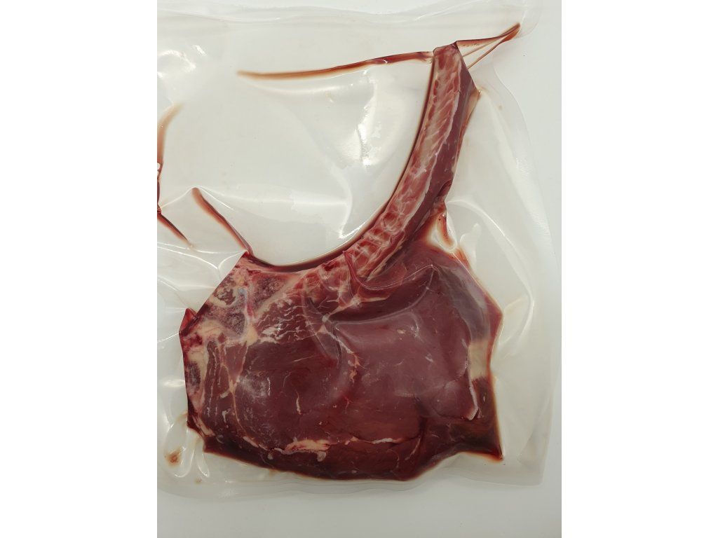 Steak z části vysokého roštěnce, která je vykrajována mezi 6 a 12 žebrem. Nezaměnitelnou chuť a tvar, připomínající indiánský tomahawk, tomuto steaku dodává právě žebrová kost. V balení je jeden steak s kostí o výšce 3-4cm (0,5-0,7kg). Objednáváte 1ks.